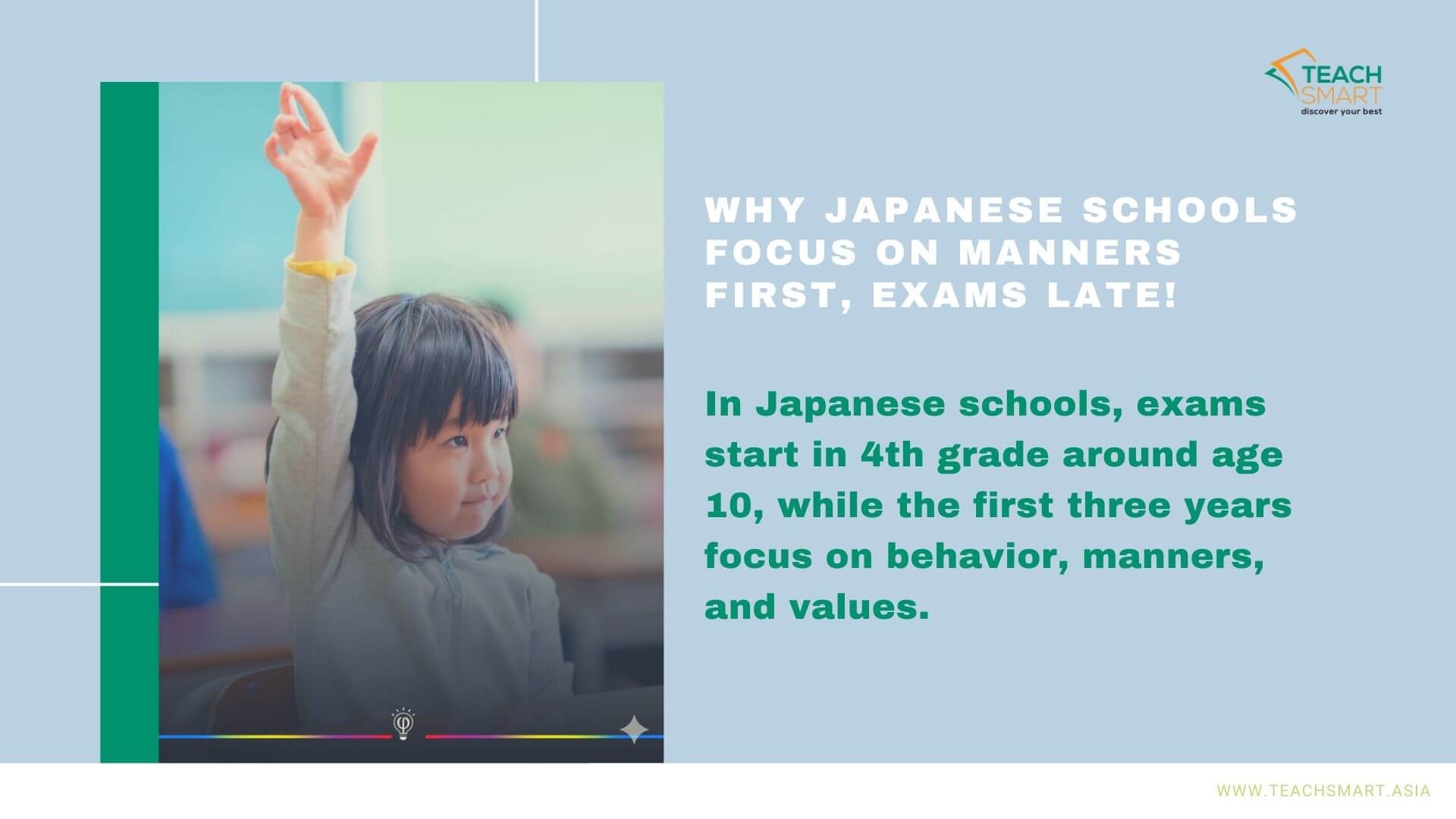 Japanese schools focus on character, manners, and social values in the first three years, teaching respect and responsibility